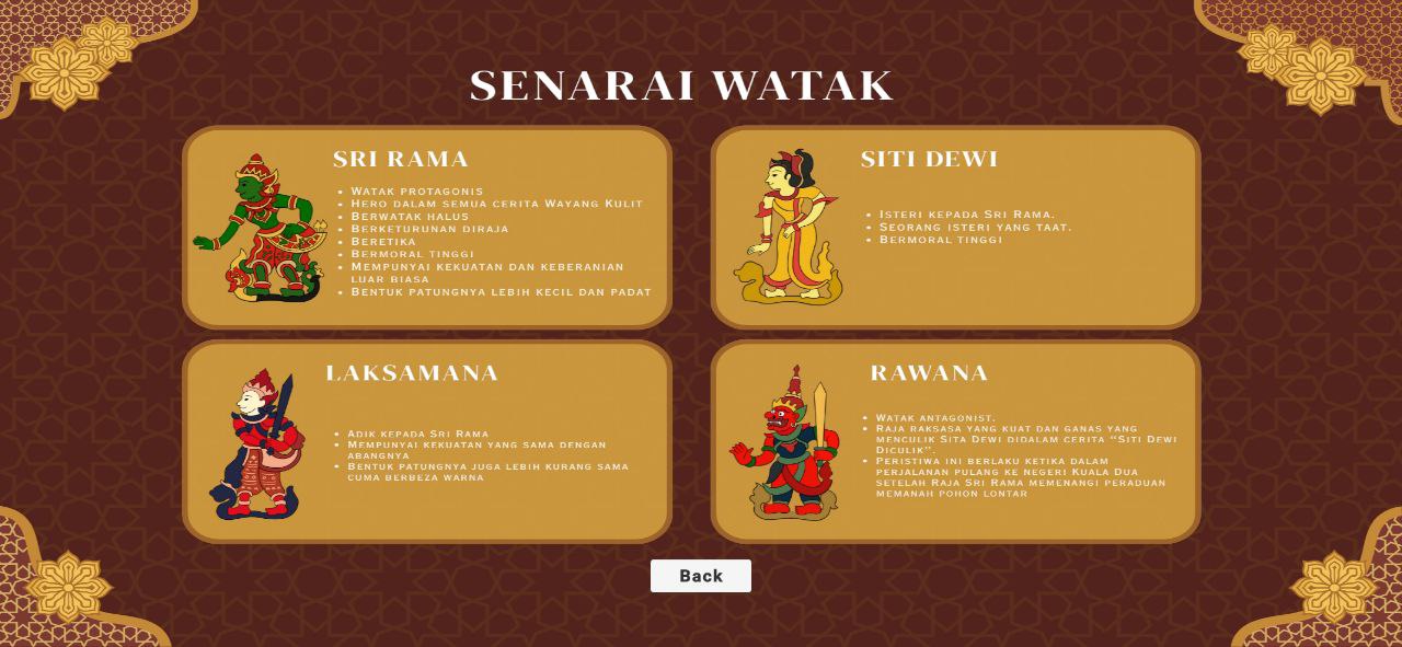 Melalui kad permainan yang direka khas, pengguna bukan sahaja dapat bermain, malah mempelajari watak-watak Wayang Kulit, jalan cerita, serta nilai moral yang terkandung di dalamnya. Dengan sokongan elemen digital dan interaktif, Wayang Kulit Game Card bertujuan menjadikan pembelajaran budaya lebih menyeronokkan, mudah difahami dan relevan untuk generasi muda.